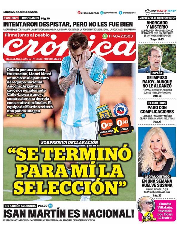Además, la renuncia de messi opacó el triunfo de chile en la final disputada en estados unidos. Cotizacion del dolar oficial y dolar blue hoy. Tapa del diario la nación del 8 de octubre de 2018.